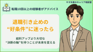 退職の引き止めで上がった給料の額も非常に重要で、例えば1万円アップなのと5万円アップなのとではあなたに対する価値が異なってきます。
